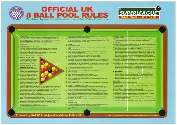 Pool Table Rules UK Pool Rules Sheet | Pool Tables Online from www.pooltablesonline.co.uk A player pots all of their designated balls and then legally pockets the 8 ball into their nominated pocket. For any other common game of pool, the 8 ball is simply a numbered ball. Watch this short video tutorial guide on how to play 8 ball under world pool rules. (see the diagram for an illustration of where the. The rules for 8 ball pool can be confusing, as there are several international variations. Some weirder, lesser known rules… if you take a shot that misses one of your coloured balls deliberately… you lose the game. As a result, our rules may. If your are playing in a bar, they usually have house rules which usually only require calling the 8 ball in the us.